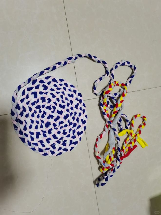 如果有缝纫机就能提高效率,纯手缝的话,就需要有点耐心了。编制好的地垫可以放在客厅的地上当地毯使用,后者放在玄关也可以,脏了也比较好洗。