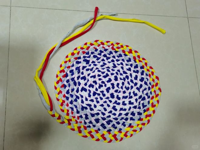 如果有缝纫机就能提高效率,纯手缝的话,就需要有点耐心了。编制好的地垫可以放在客厅的地上当地毯使用,后者放在玄关也可以,脏了也比较好洗。